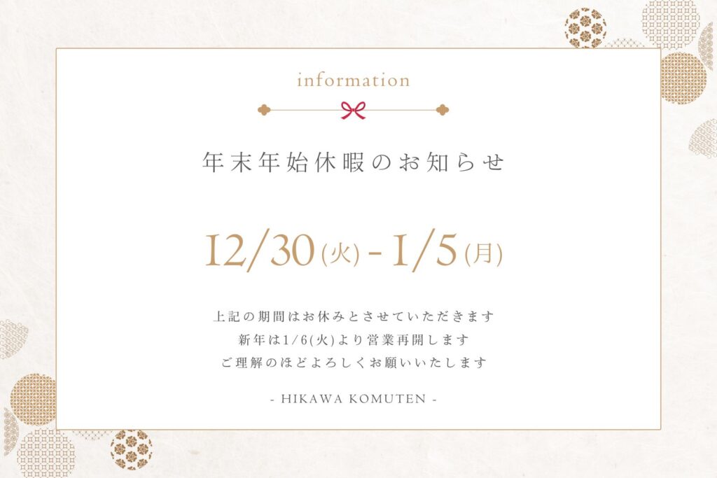 年末年始休暇:2025/12/30(火)〜2026/1/5(月)