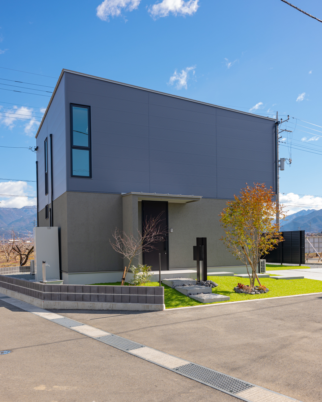 ●印象の異なるグレーを使い分けたシンプルな外壁