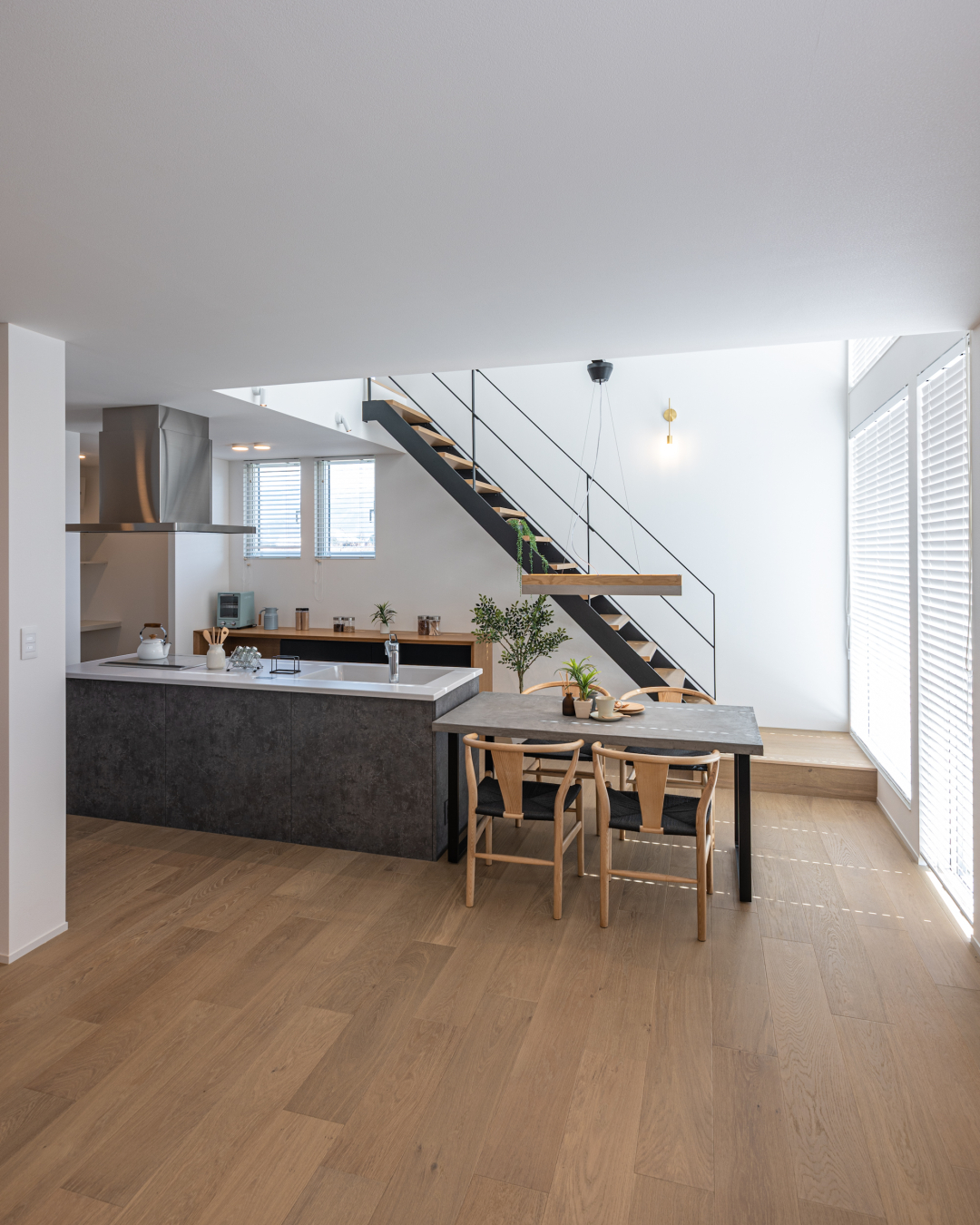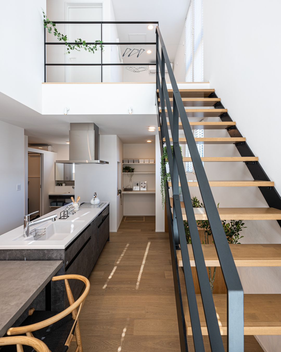 ●光の抜けるスケルトン階段を活用して大きな吹き抜けを確保
