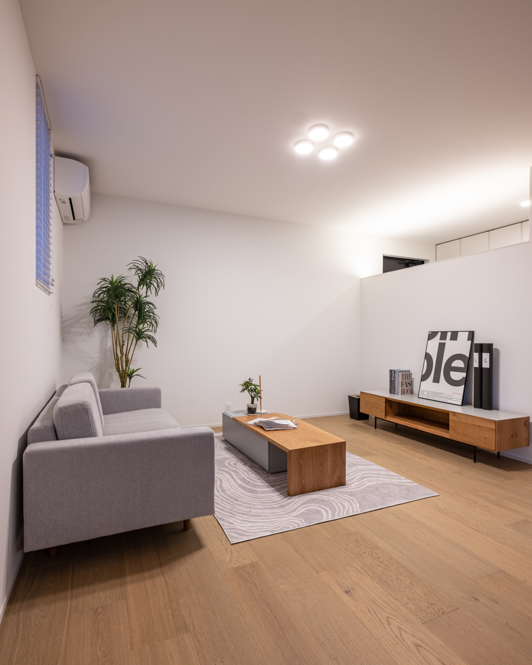 …オフホワイト×北欧グレー×アッシュブラウン(オーク床)でやわらかな印象に