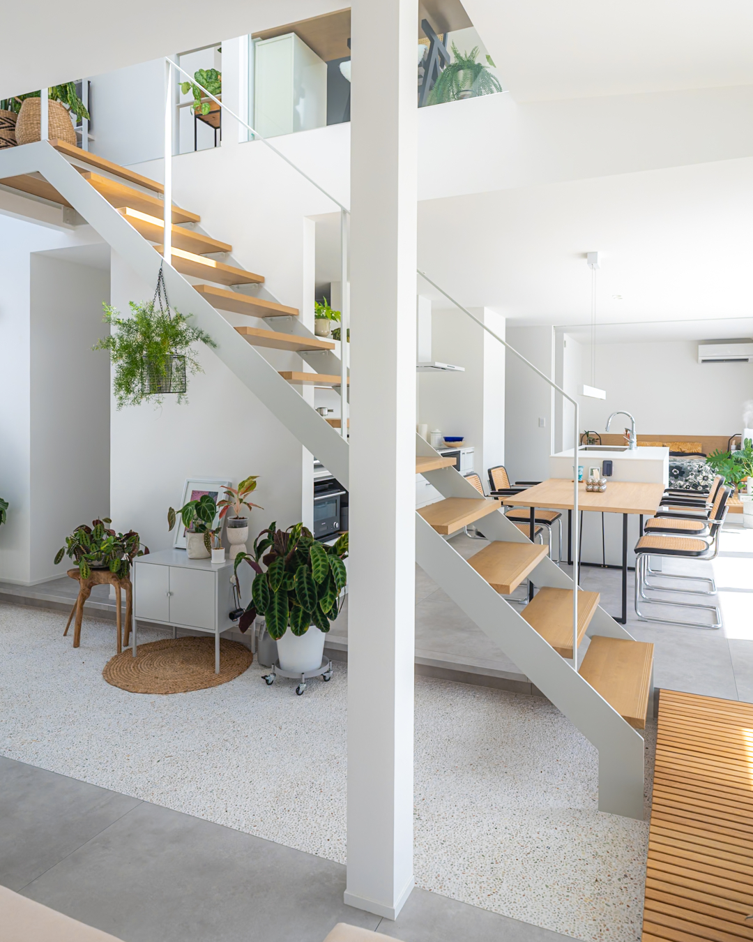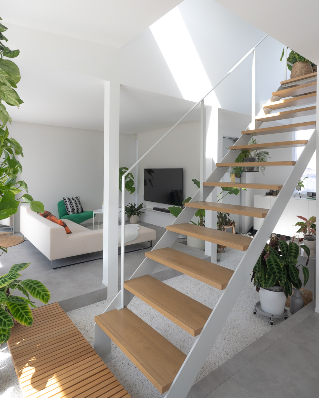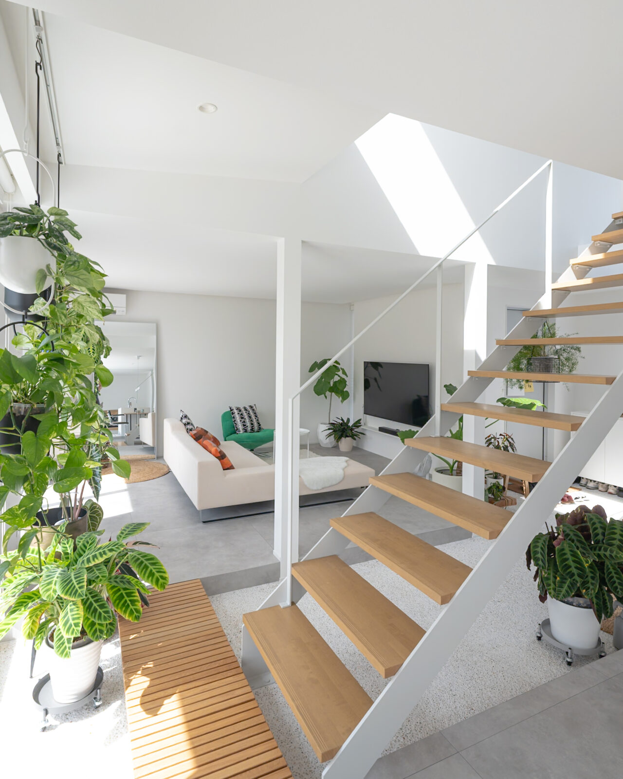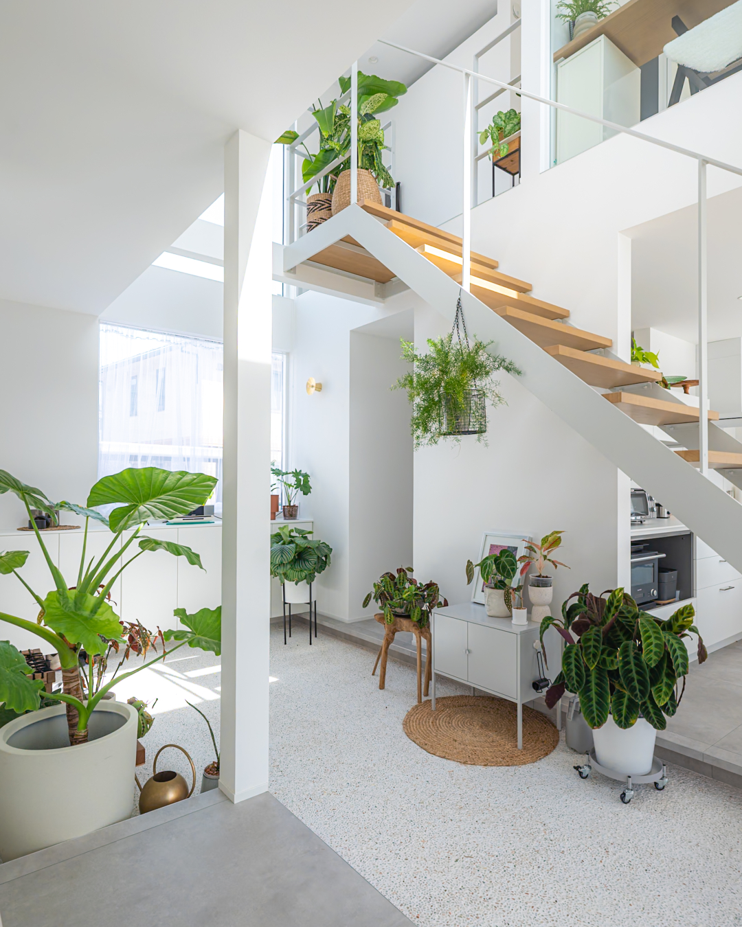 ●壁紙はもちろん階段や梁、照明も白で揃えてシンプルに!